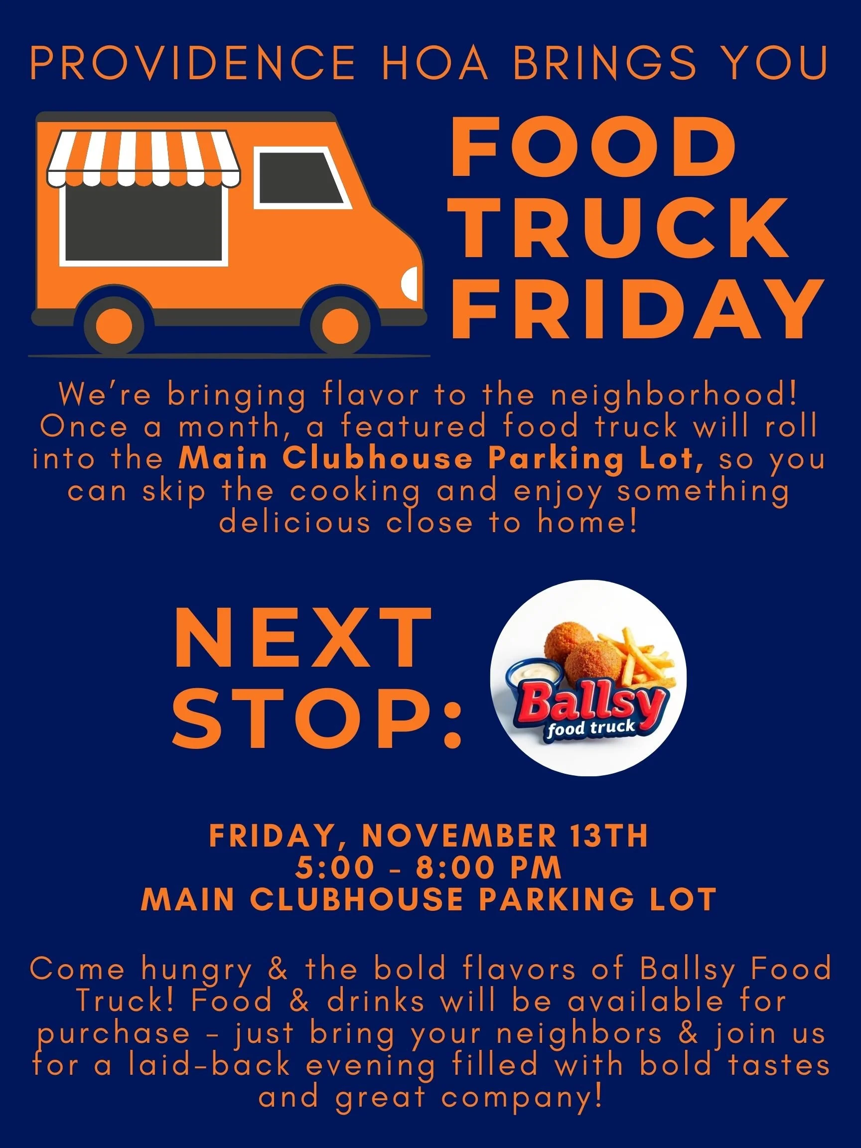 Skip the kitchen - dinner’s on us (well, sort of)! Join us for this month’s tasty feature: Ballsy Food Truck. Grab your friends, bring your appetite, and enjoy a night of bold flavors right here in the community. Food and drinks available for purchase.
