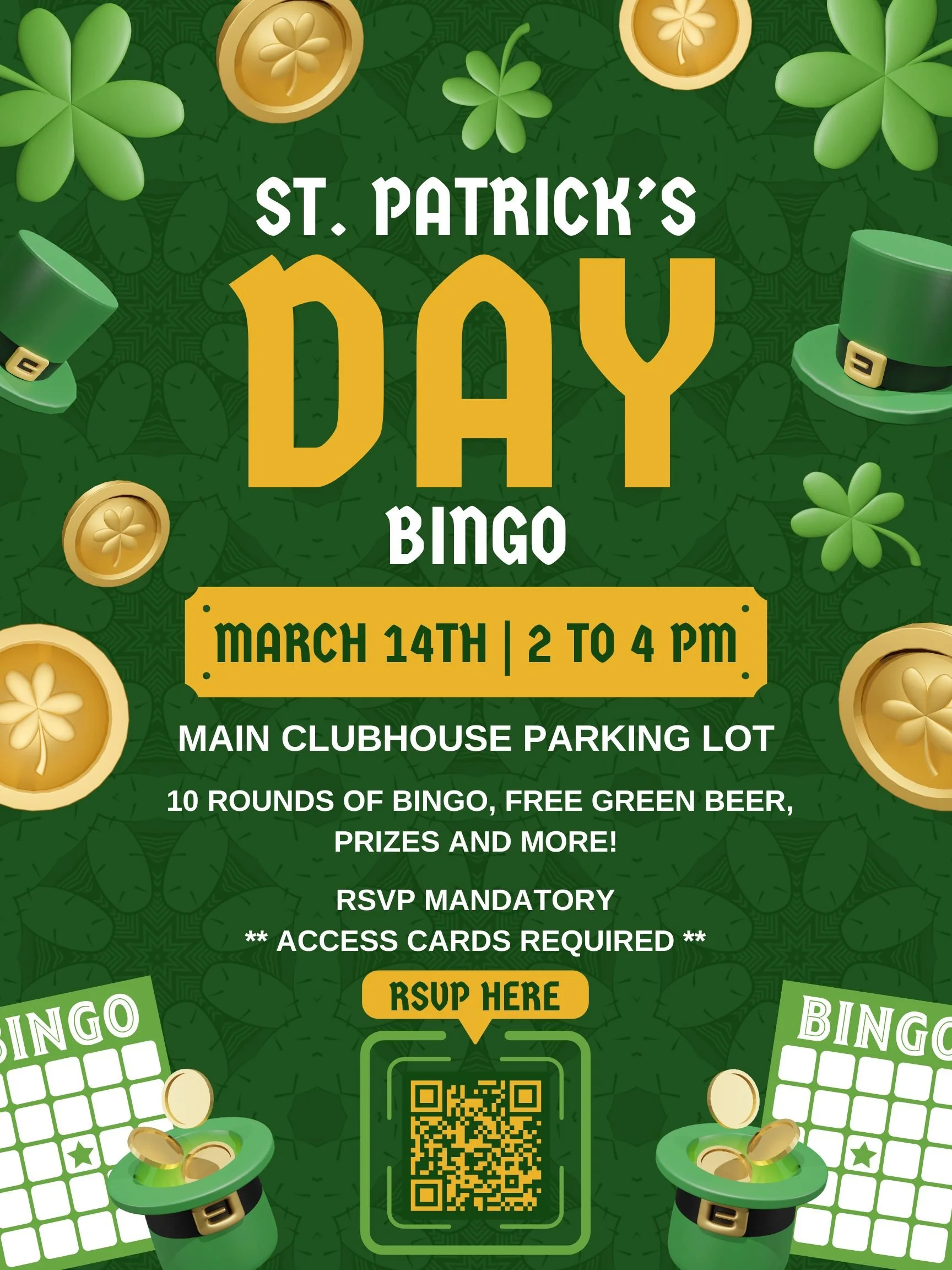 Celebrate the luck of the Irish with an afternoon of Bingo, prizes, and community fun! Whether you're feeling lucky or just love a good game, this event is sure to bring some green-themed cheer.