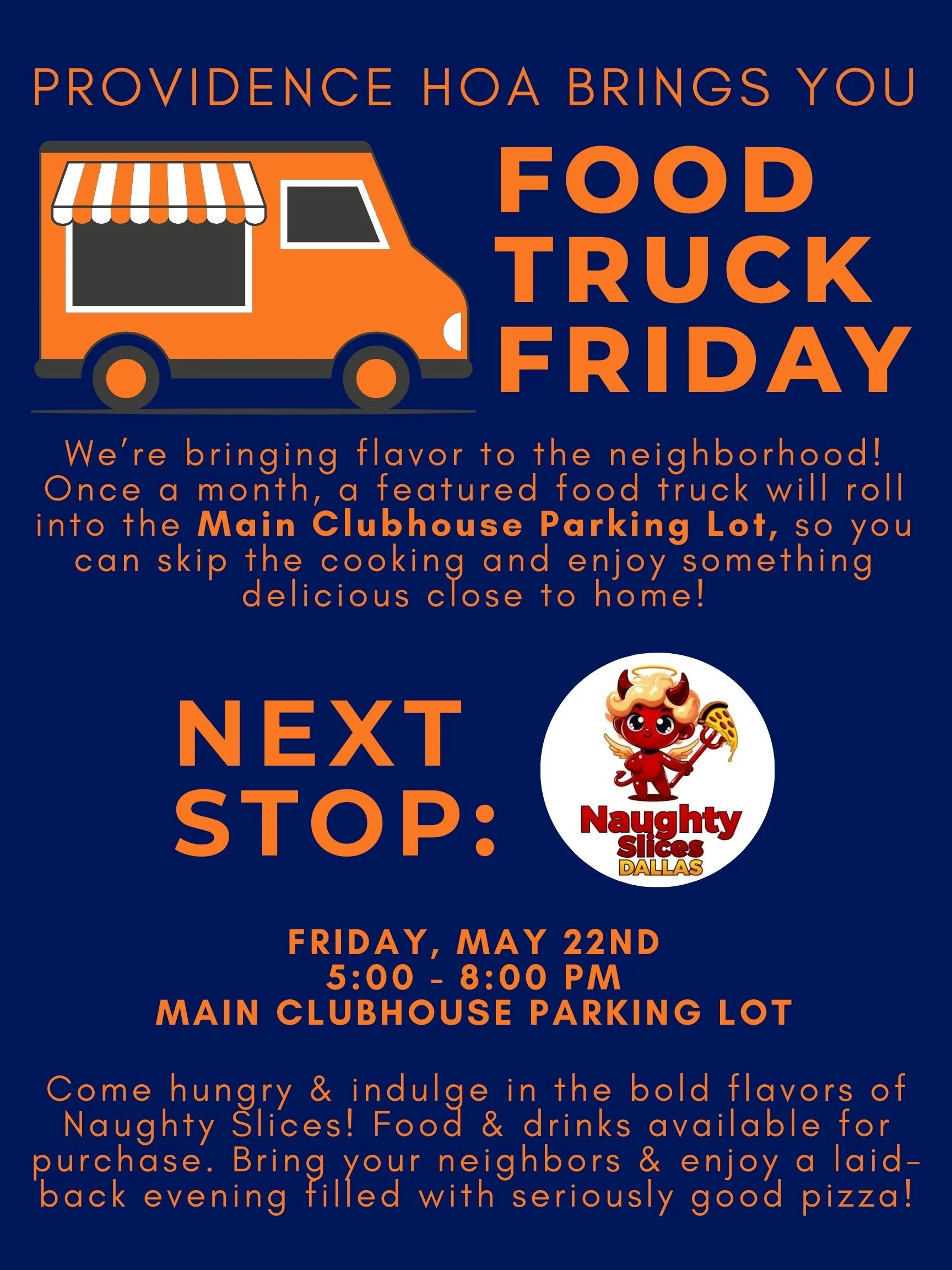 Skip the kitchen - dinner’s on us (well, sort of)! Join us for this month’s tasty feature: Naughty Slices. Grab your friends, bring your appetite, and enjoy a night of bold flavors right here in the community. Food and drinks available for purchase.