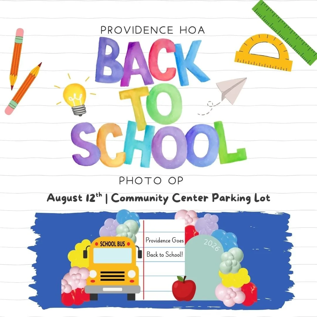 Stop by our Back‑to‑School Photo Op and snap a picture your family will love before the first bell rings! We’ll have a festive photo backdrop set up outside the Community Center parking lot at 9400 Waterman Drive, conveniently located across from Monaco Elementary School - perfect for capturing that classic first‑day‑of‑school moment.